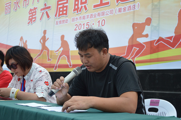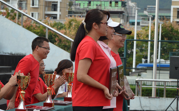 下午15:50,閉幕式開始。本屆運動會裁判長、麗水職業(yè)技術學院人文藝體分院梁勇建老師首先宣布了團體項目比賽成績和各獎項的獲得單位,(個人項目的獎項在各項比賽完畢后已經陸續(xù)發(fā)放完畢。)并舉行了頒獎儀式。