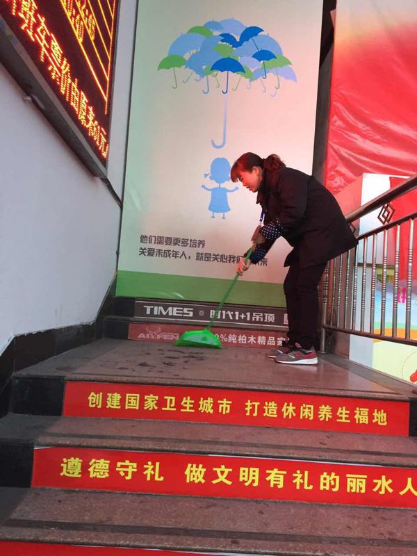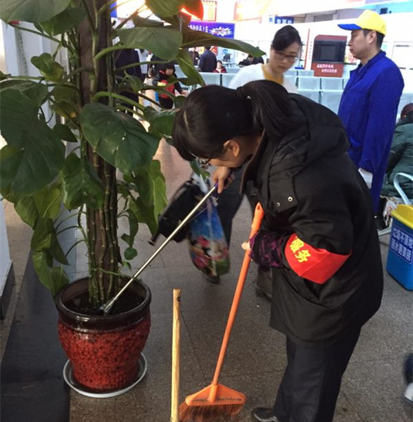 12月10日8:30,東站黨員志愿者在黨支部書記江小華的帶領(lǐng)下分別對站內(nèi)的墻面進(jìn)行刷白和衛(wèi)生死角的清掃。