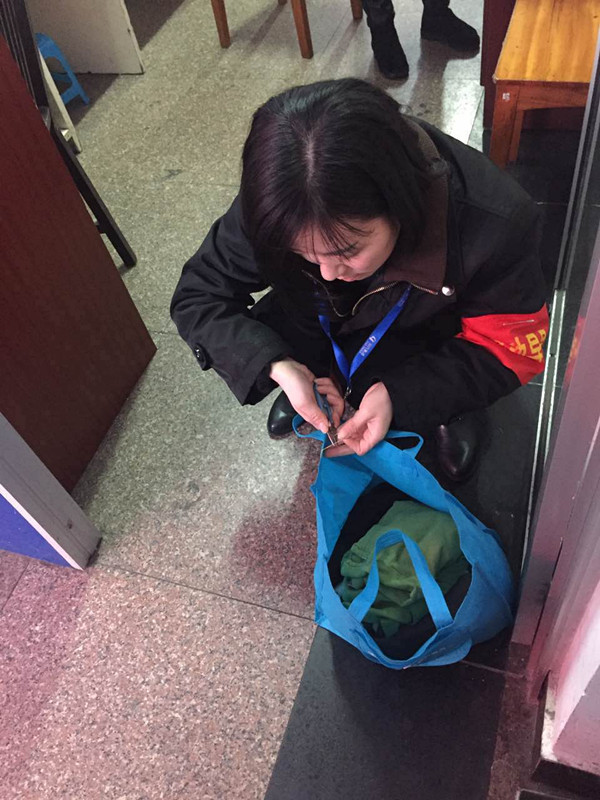 原來(lái)老伯一時(shí)疏忽只拎了環(huán)保袋一邊的帶子,由于一根帶子的承受力有限,帶子的一頭斷了。老伯邊撿起東西住袋里放邊嘟囔著:“這下怎么辦好呢,又沒(méi)有其它的袋子?!薄拔铱纯p一縫還能用,我們服務(wù)臺(tái)備有針線,我?guī)湍憧p一縫?!背替聢@安慰到。說(shuō)著,快步跑進(jìn)服務(wù)臺(tái),從便民盒里拿出針線認(rèn)認(rèn)真真的縫了起來(lái)。雖然一個(gè)環(huán)保袋值不了多少錢(qián),可是她還是縫得非常地細(xì)致。沒(méi)一會(huì)兒環(huán)保袋縫好了,老伯接過(guò)袋子還不忘帶上老花鏡看上一番,“你的針線活不錯(cuò),要不是我的眼晴老花了,我的針線活也是可以的,我們以前當(dāng)兵的時(shí)候針線活都是自己做的。你的服務(wù)這么好,我一定要把剛才給你拍的照片發(fā)到我的戰(zhàn)友群里表?yè)P(yáng)表?yè)P(yáng),你們東站的服務(wù)不錯(cuò)。”