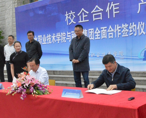 下午2時50分,麗汽集團總經(jīng)理薛和有與麗水職業(yè)技術(shù)學院院長梁偉祥簽訂“校企合作”協(xié)議。
