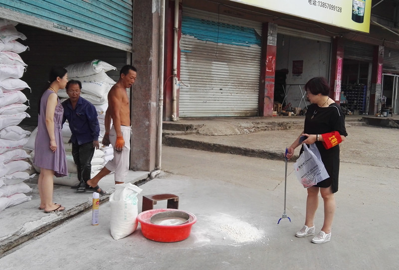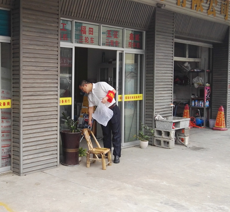呂主席勸導(dǎo)商家保持門(mén)前環(huán)境,交談后,商家立即把門(mén)前衛(wèi)生打掃干凈,表示一定會(huì)做好門(mén)前三包工作。