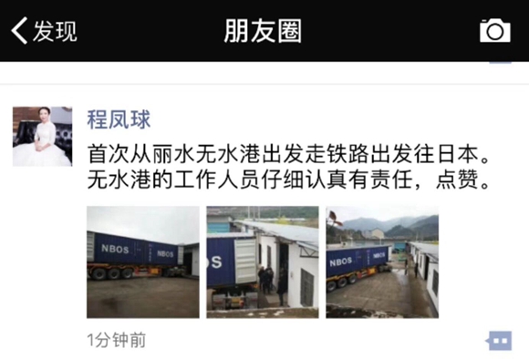 “首次從麗水無水港出發(fā)走鐵路出發(fā)往日本,無水港的工作人員仔細(xì)認(rèn)真有責(zé)任,點(diǎn)贊?!边@是麗水春子農(nóng)業(yè)裝箱后老板發(fā)在朋友圈上的。大家都表示能得到客戶的認(rèn)可和信賴是對(duì)我們工作最大的肯定,再苦再累都值得。