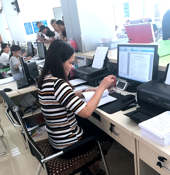 綜合業(yè)務(wù)部是安檢站車輛檢測(cè)流程開始和結(jié)束的關(guān)口部門,部門的9名員工中有8位是女同胞,擔(dān)負(fù)著安檢站所有直接面向客戶的服務(wù)。從檢測(cè)業(yè)務(wù)預(yù)約、受理到檢測(cè)收費(fèi)、檢測(cè)審核出單,甚至新車燃料消耗量核查、檢測(cè)信息的上傳及行駛證合格標(biāo)志的打印,無(wú)一不經(jīng)過她們之手。每天上班,她們是第一個(gè)開始工作的崗位,每天下班,她們要堅(jiān)守到最后一筆業(yè)務(wù)完成。雖然來(lái)自不同的地方,但緣分讓她們齊聚在安檢站這個(gè)工作舞臺(tái)上,共同演繹了一段段敬業(yè)奉獻(xiàn)的感人故事。