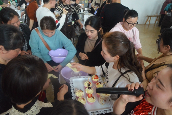 女同胞們有的揉面有的搓團(tuán)兒,有的掂勺有的擺盤,有的擺弄雕花,還有穿起了糖葫蘆串兒,為了團(tuán)隊(duì)的榮譽(yù),個(gè)個(gè)擼起?子加油干!