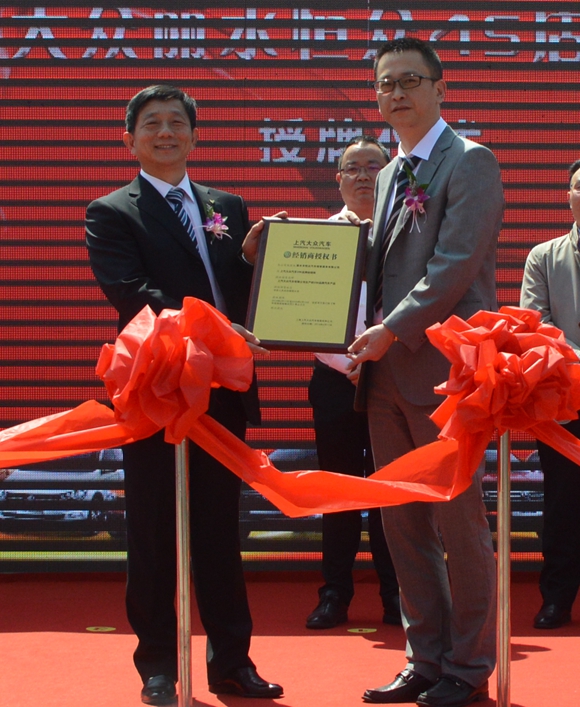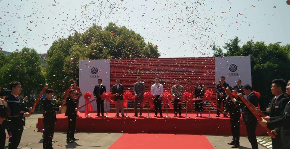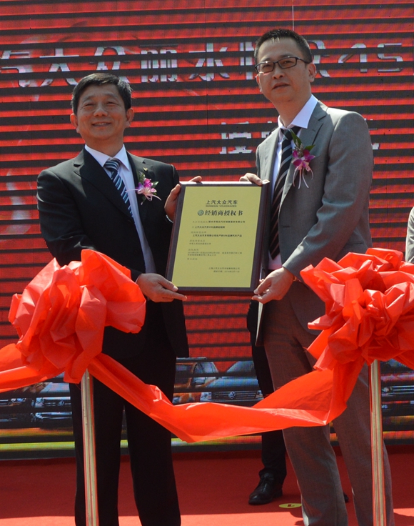 開業(yè)慶典儀式上,上汽大眾華東分銷中心副總經(jīng)理張磊鄭重地將上汽大眾汽車經(jīng)銷商授權(quán)牌匾交到麗水市恒眾汽車銷售服務(wù)有限公司董事長何赤詮手上。