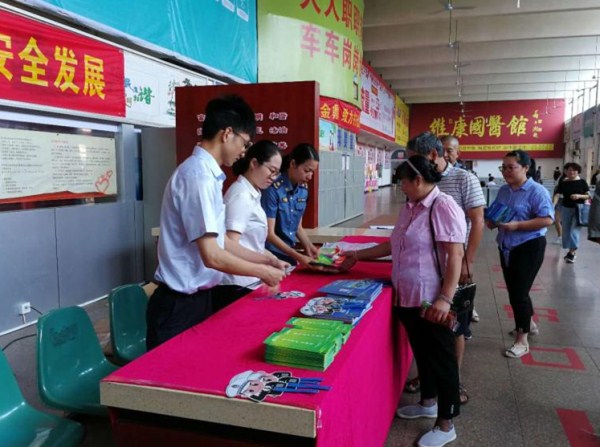 活動中,通過發(fā)放安全知識宣傳單、粘貼海報、咨詢服務(wù)等方式,為過往旅客、周邊店面承租戶、駕駛員、站務(wù)員等送上安全行車、用電安全、職業(yè)衛(wèi)生等安全知識及相關(guān)法律法規(guī)知識。