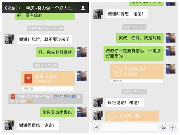 據(jù)了解,梅申慶是安徽池州東至縣大渡口人,46歲,目前在麗水一家企業(yè)打工。妻子身體也一直不好,近兩年前后動過兩次手術(shù),生病后就一直待在家里休養(yǎng),陪在他們身邊的還有一個正在上初中的小女兒。周偉教練的女兒知道父親學(xué)員的情況后,也通過父親向梅申慶捐助了500元,鼓勵他一定要為了家人養(yǎng)好身體,爭取早日好起來。