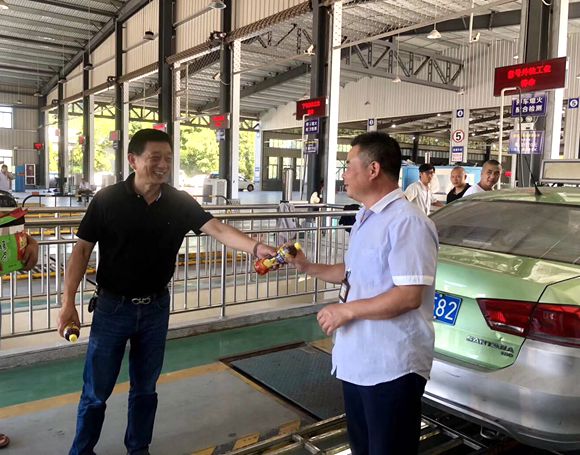 在客運(yùn)站發(fā)車場地、4S店維修車間、加油站、車輛檢測車間、駕培訓(xùn)練場地等高溫作業(yè)崗位,3位集團(tuán)公司領(lǐng)導(dǎo)將一份份降暑飲品遞到奮斗在各個崗位的員工們手中,并向他們致以親切的問候和崇高的敬意,讓大家不僅感受到了炎炎夏日里的一片”清涼”,還感受到了來自集團(tuán)領(lǐng)導(dǎo)的深深關(guān)愛。