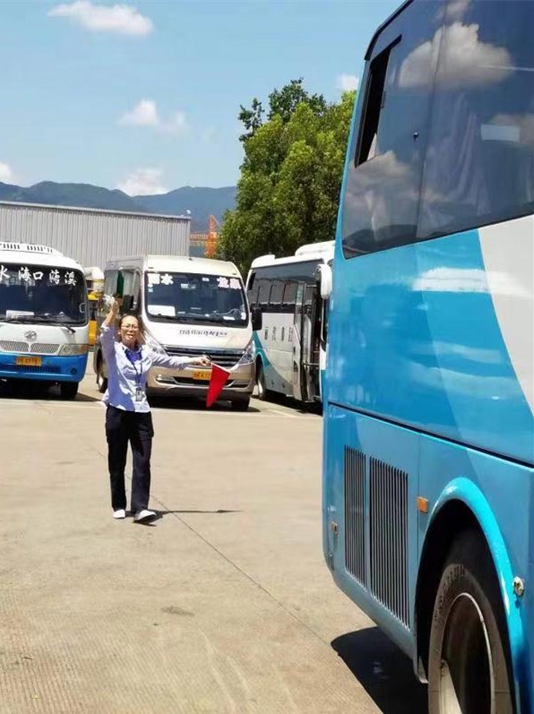 自從麗水進(jìn)入高溫模式以來(lái),客運(yùn)東站的站場(chǎng)就像一座大熔爐。在被曬得白花花的水泥地上,只要你稍作停留,熱浪就會(huì)從腳底直往上竄,鞋底像要被熔化似的。而在客運(yùn)東站,有這樣一個(gè)班組,他們每天頂著烈日,用紅綠旗指揮著一輛輛滿載旅客的車子安全出發(fā)--這就是客運(yùn)東站的行車組,由13名女同志和1名男同志組成。