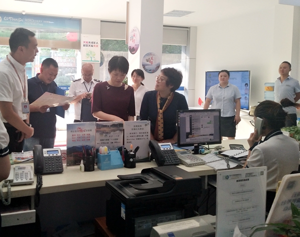 盧彩柳一行實地查看了集散中心門市大廳,聽取了翁偉邦經(jīng)理關(guān)于國慶安保維穩(wěn)工作的匯報。副市長盧彩柳對集散中心的安全工作表示肯定,并要求在全力做好70周年安保維穩(wěn)工作的同時,做好國慶期間旅客運輸工作,杜絕一切安全事故的發(fā)生。