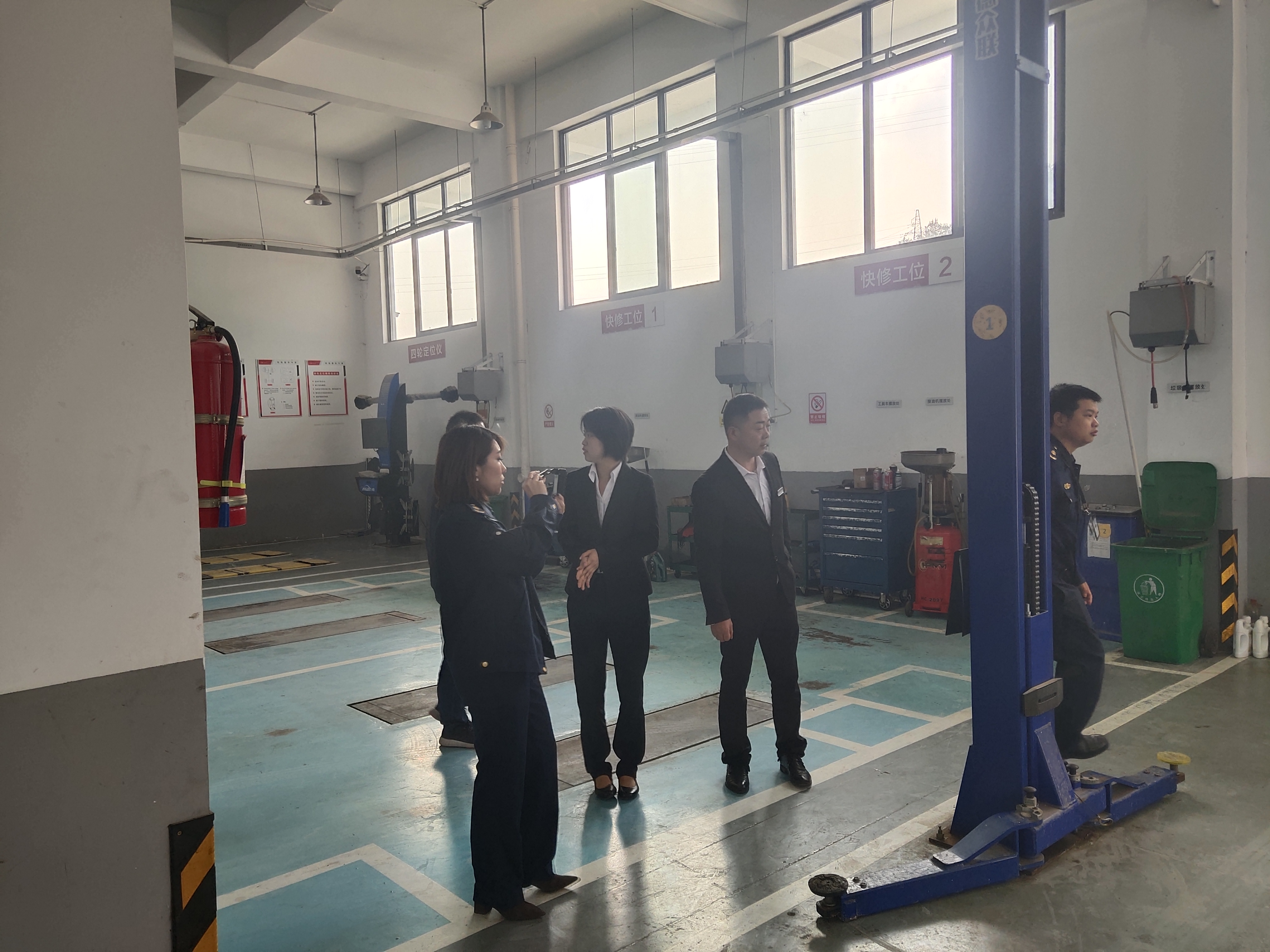 檢查小組一行首先深入車間現(xiàn)場查看安防設(shè)備設(shè)施配備情況及車間維修技師實際操作是否符合崗位操作標(biāo)準(zhǔn)規(guī)程。隨后檢查人員又圍繞企業(yè)經(jīng)營資質(zhì)條件,安全生產(chǎn)制度,日常安全管理臺賬,企業(yè)隱患排查整改,服務(wù)質(zhì)量管理,維修工時定額和收費標(biāo)準(zhǔn)公布落實,及從業(yè)人員安全生產(chǎn)宣傳教育培訓(xùn)等情況進(jìn)行一一核查。