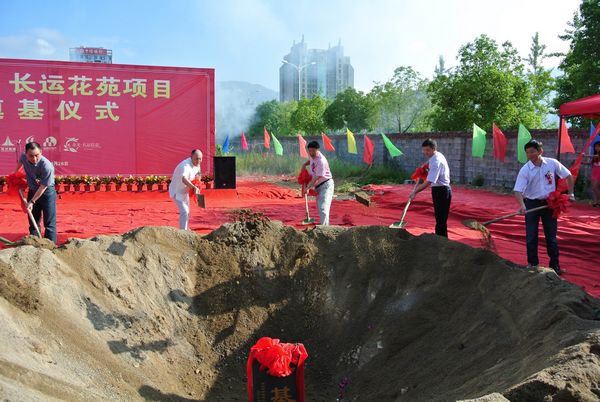 2012年8月26日上午,金龍.長(zhǎng)運(yùn)花苑商住房項(xiàng)目舉行隆重開(kāi)工奠基儀式。儀式現(xiàn)場(chǎng),地毯披紅,人潮涌動(dòng),彩旗飄飄,音樂(lè)雄壯激昂,高空氣球和氣拱門(mén)更是增添了會(huì)場(chǎng)的熱烈。