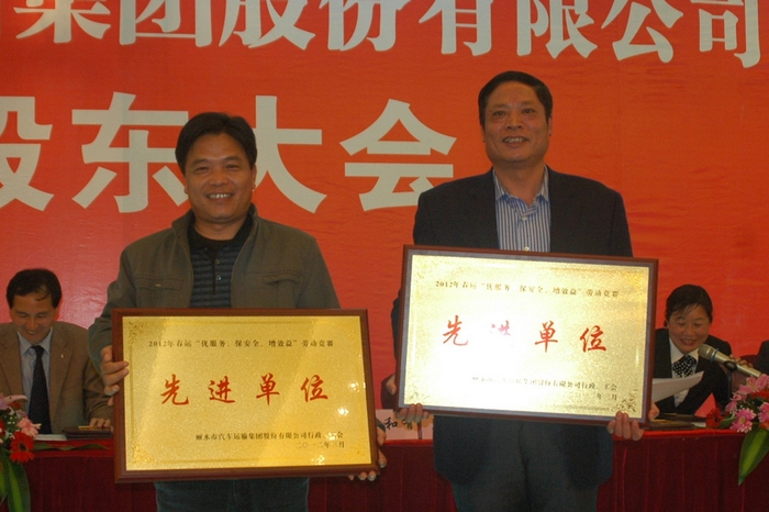 麗水市汽車運(yùn)輸集團(tuán)股份有限公司第三次股東大會(huì)于2012年3月28日在麗水中意大酒店召開。會(huì)議由集團(tuán)公司董事、總經(jīng)理薛和有主持。