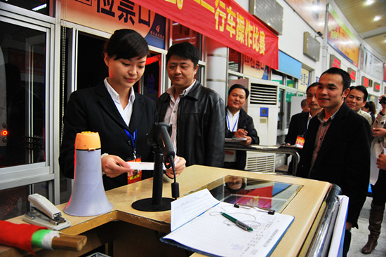 站售操作比賽11月14日晚,在旅游集散中心舉行??瓦\東站、客運西站分別派出4名選手參賽。經(jīng)過角逐,客運西站封慧麗、客運東站魏麗、客運西站林莉分獲前3名。