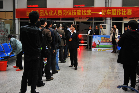 行車操作比賽11月15日晚在客運西站舉行,客運東站、客運西站分別派出4名選手參賽。經(jīng)過角逐,客運東站郭妙芬、客運西站蔡蜜、客運東站章蔚分獲前3名。