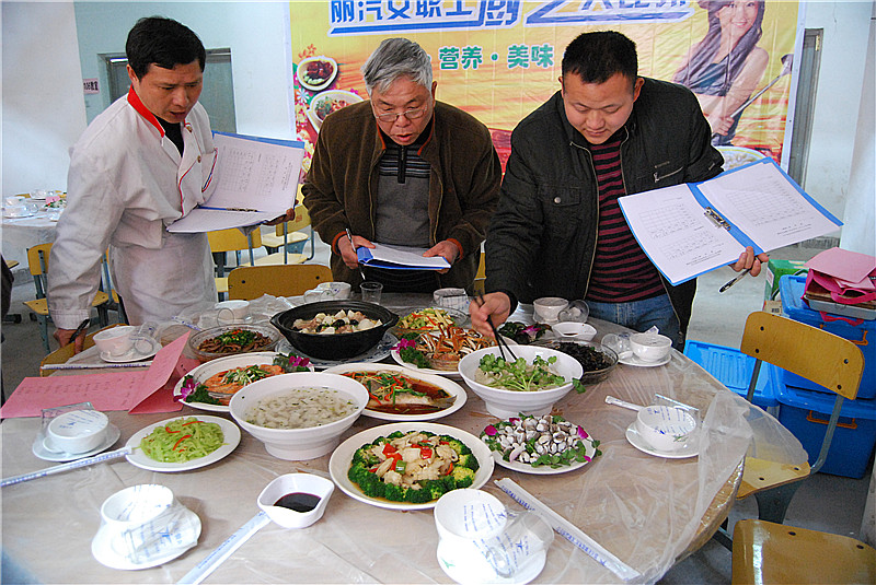 爆炒豬肝、豆腐丸子、蒜蓉大蝦……一道道誘人的家常菜端出廚房,可以看出大家伙對今天的比賽還是下了一番功夫了。由山海實訓基地的烹飪老師組成的評委組綜合對各組燒制的菜肴的色、香、味、型,進行打分,并對每一道菜品進行了點評??炜头止尽⑽锪鞴韭?lián)隊和技術(shù)學校、南明賓館聯(lián)隊分獲一、二等獎。