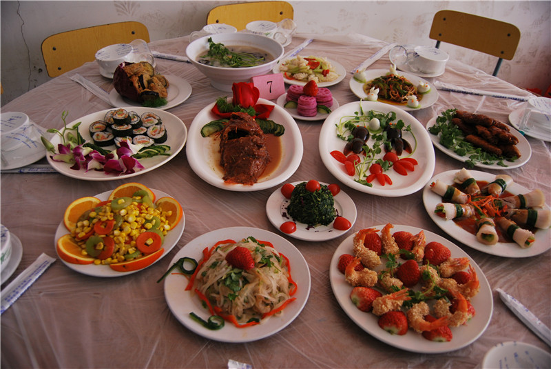 參加廚藝大比拼的7支隊伍,42位選手,分別來自集團公司各單位,有單獨組隊的,也有聯(lián)合組隊的。和去年三八節(jié)女工烹飪比賽相比,今年的難度增加了不少,根據(jù)比賽規(guī)則,每組選手必須在兩個小時內(nèi)完成4個冷盤、8個熱菜、1個湯、1個點心的制作。