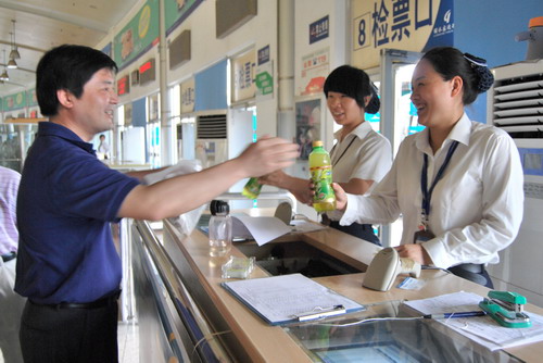 為做好夏季防暑降溫工作,今年集團(tuán)公司除發(fā)放清涼飲料費(fèi)外、還在給全體在崗員工每人發(fā)放了五豐冷食冷飲票。在做好員工的防暑降溫工作的同時(shí),集團(tuán)公司客運(yùn)東、西站候車廳所有空調(diào)全部啟用,客運(yùn)東站還打開吊扇,確保室內(nèi)空氣的流通,為旅客營(yíng)造了舒適、清涼的候車環(huán)境,"流動(dòng)之家"服務(wù)班還在原來(lái)送茶水的基礎(chǔ)上,增添了送涼茶(金銀花茶)服務(wù)項(xiàng)目,受到旅客的好評(píng)。