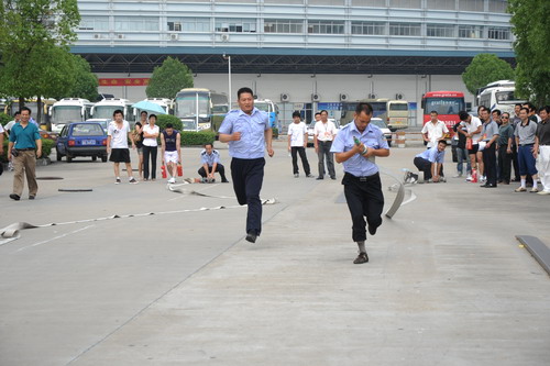 各分公司、子公司的11支義務(wù)消防隊參加了消防接力比賽。經(jīng)過角逐,集團(tuán)本部、伊翔公司、客運東站分獲比賽前三名。