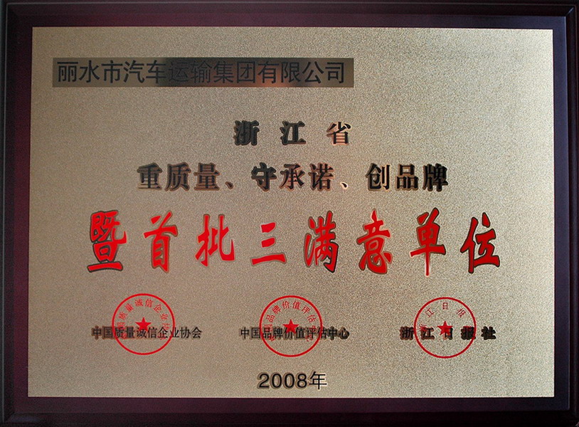 2008年浙江省重質(zhì)量、守承諾、創(chuàng)品牌暨首批三滿意單位