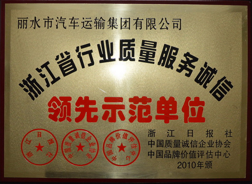 浙江省行業(yè)質(zhì)量服務(wù)誠信領(lǐng)先示范單位
