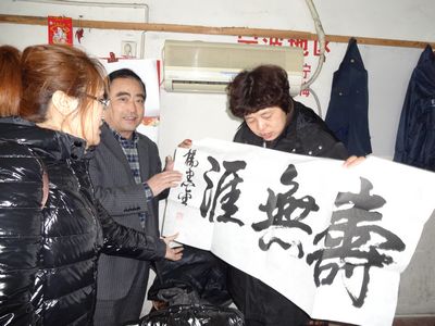 終于,神色焦急的楊先生進入了宣主任的視線,她主動上前詢問。一聽到有人撿到包,楊先生心情很激動,趕緊跟著宣主任到行包受理室查問。最后經(jīng)過核對確認,小田撿到的包正是他丟失的;經(jīng)清點,包內(nèi)物品一件不少。楊先生說,他是代表山東泰山文化藝術(shù)研究院來麗水聯(lián)系中國藝術(shù)文化交流的;筆記本電腦里全是文化交流的資料,對他來說非常重要,他非常感動,非要重重酬謝小田和宣主任不可。當楊先生聽到宣主任說,東站的工作人員拾物都會上交歸還時,就對東站的領(lǐng)導給予員工的教育培養(yǎng)深表欽佩。為表示感謝,楊先生堅持要贈送給小田一幅他的墨寶“壽無涯”,喻示著好人一生平安,好人長壽無疆。
