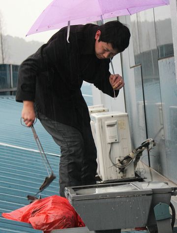 原來,西站辦公大樓和售票大廳銜接的位置有一個(gè)排水溝,因售票大廳的樓層較矮,風(fēng)經(jīng)常會(huì)把周邊的落葉吹上屋頂,從而造成此處的排水溝排水不暢通。要是遇見雨天,如果不及時(shí)疏通,會(huì)導(dǎo)致積水滲漏到售票大廳。邱波是客運(yùn)西站的電工,疏通下水道本不是他份內(nèi)工作,但在他得知這一情況后,主動(dòng)承擔(dān)起了這項(xiàng)工作,每逢下雨都會(huì)上屋頂查看排水情況。昨夜今晨的這一場大雨,又讓邱波惦記起這事來,他趕了個(gè)大早來到單位,忙完自己手頭的工作,就趕緊提著塑料袋、火鉗,打著雨傘爬到屋頂上,排水溝果然又被樹葉等雜物堵住了,邱波左手提著塑料袋,右手拿著火鉗,用脖子夾著雨傘,冒著大雨,困難的走在售票大廳濕滑傾斜的屋頂上,將水溝中的雜物一點(diǎn)一點(diǎn)夾出來,經(jīng)過一番努力,水溝終于干凈了,積水也順暢的排入了下水道,此時(shí)的邱波全身上下都已經(jīng)濕透了。