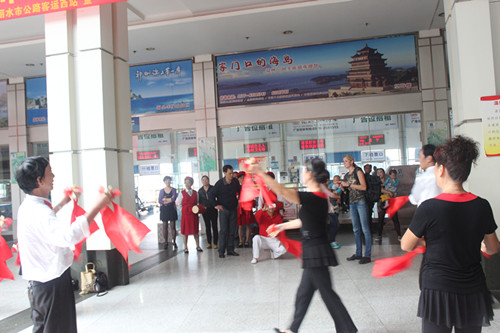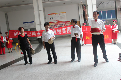 10月10日上午,蓮都區(qū)創(chuàng)衛(wèi)宣傳隊(duì)走進(jìn)客運(yùn)西站,在候車室用他們自己編排的創(chuàng)衛(wèi)節(jié)目向西站員工和過(guò)往旅客進(jìn)行“創(chuàng)國(guó)衛(wèi)”的宣傳。 宣傳隊(duì)員認(rèn)真的表演,引來(lái)不少乘客駐足觀看。