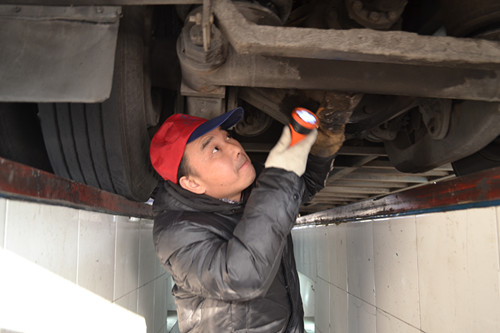 趁著他工作的間隙,我上前:“何師傅,一天下來要檢驗(yàn)多少車子?”“大概130輛吧”。130輛,我細(xì)算了一下,檢驗(yàn)一輛車子大概要5分鐘,就意味著門檢員每天要不停地工作11個小時,而每檢一輛車子都需要特別謹(jǐn)慎認(rèn)真的,車底上下大大小小的二十來個部件,即使是一顆螺帽都不能馬虎。例行檢查鉆到車底時,有時被尾氣嗆得連眼都睜不開;碰上雨雪天氣,被污泥臟水“洗臉”也是常有的事。