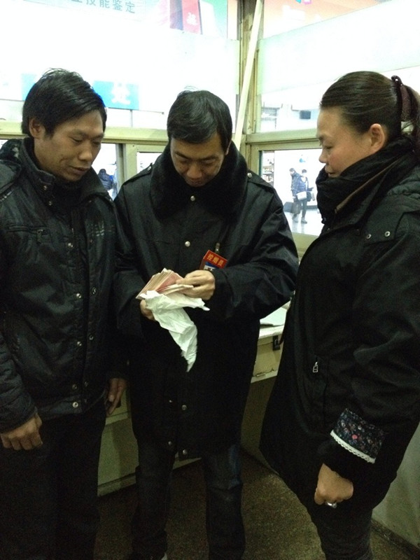 經(jīng)了解,這個男子名叫鄧干武,貴州人,文盲,這16400元錢是他打工過一年的攢下的辛苦錢,也是一家老小過年錢。因為不識字,所以也沒存銀行,而是用餐巾紙包好藏在一個很不起眼的背包夾層里。失而復(fù)得的錢,讓鄧干武欣喜無比,而東站員工的行為,更溫暖了人心,溫暖著社會。