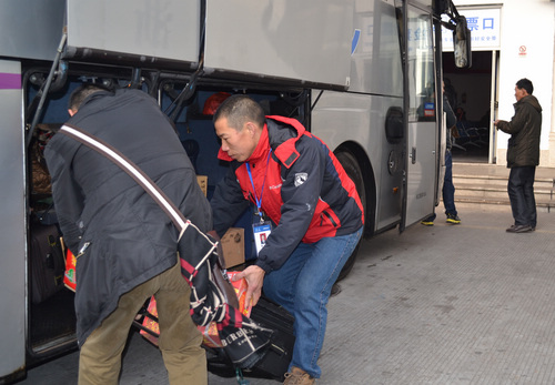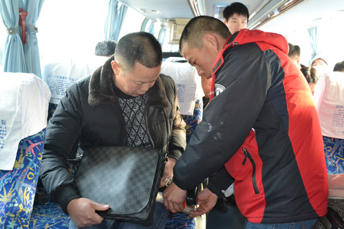 “加班到金華的駕駛員已經(jīng)報(bào)班!”1月17日13:00分,駕駛員曾國偉準(zhǔn)時來到車隊(duì)簽到,半個小時前,曾國偉還在親戚家喝喜酒,接到13:30要開加班車的任務(wù),他沒來的及等吃完飯就趕到了單位。同事問起來時,他幽默地說:“春運(yùn)了,隨時都有加班任務(wù),哪敢隨意喝酒啊,這可是系著一車旅客的安全?!?br />說話的工夫,他來到班車上試了試燈光,檢查了機(jī)油和水位,試發(fā)一下發(fā)動機(jī),隨后又敲了敲輪胎,各項(xiàng)正常。開車前,他拿起了茶杯,卻只是稍稍抿了一小口,出車前,不敢多喝水,生怕影響行車,這也是他多年的習(xí)慣。隨著一聲哨響,曾國偉駕駛的班車也緩緩地駛出了客運(yùn)西站。