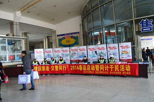 16日上午,集團(tuán)公司與市交警支隊、高速交警支隊、市運管局等單位在客運西站舉行春運啟動暨問計于民活動。(宣教部 蘭寧)