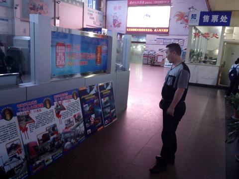 在開(kāi)展安全生產(chǎn)宣傳教育活動(dòng)期間,客運(yùn)東站以黑板報(bào),宣傳欄等形式進(jìn)行安全宣傳,強(qiáng)化員工安全意識(shí),提高安全責(zé)任素養(yǎng)。在進(jìn)入客運(yùn)東站的走廊通道上可以看到擺放著的各種安全宣傳牌,以供司乘人員學(xué)習(xí),提高安全意識(shí)。在安全工作上提高安保級(jí)別,加大對(duì)旅客行包的檢查力度,保衛(wèi)稽查科嚴(yán)格按照危險(xiǎn)物品檢查的安全規(guī)定制度操作,不論大小行李,只要是隨身物品進(jìn)入東站,一定要經(jīng)過(guò)安檢人員檢查方可進(jìn)站乘車(chē),把安全隱患消滅在萌芽中。