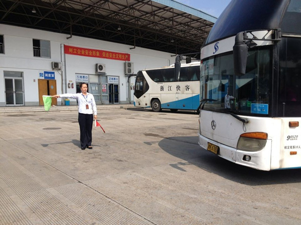 正午時分,行車員們頂著烈日,揮動著紅綠旗,認(rèn)真地為車輛引航,安全及時地送出一撥撥旅客。愛美之心人皆有之,行車組的姐妹們也不例外,可是為了發(fā)車安全,一件長袖襯衫、一頂遮陽帽就是她們面對毒辣太陽的全副武裝。