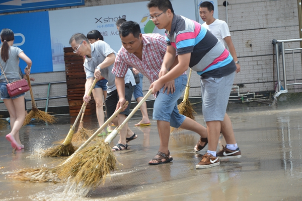 機(jī)關(guān)本部的救援隊(duì)伍來了,一個(gè)個(gè)掄起掃把,沒有過多的語言,用實(shí)際行動(dòng)立馬參與到救援當(dāng)中。