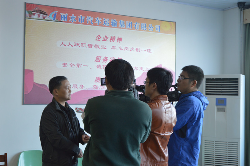 客長運(yùn)分公司經(jīng)理張文川正在接受麗水電視臺(tái)三個(gè)頻道的聯(lián)合采訪(張國軍/攝)