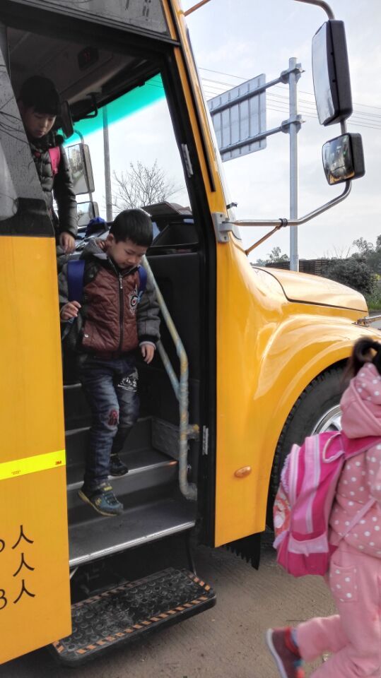 6點(diǎn)45分,校車(chē)準(zhǔn)時(shí)來(lái)到下趙村站點(diǎn),孩子們看到“長(zhǎng)鼻子”校車(chē)異常興奮,原本安安靜靜的孩子們歡蹦亂跳地沖過(guò)來(lái),原本整齊的隊(duì)伍一下子開(kāi)始變得無(wú)序。駕駛員一開(kāi)門(mén),我就趕忙跳下車(chē),攔住后面推搡的孩子,引導(dǎo)他們排隊(duì)上車(chē)、找好位置坐下。
