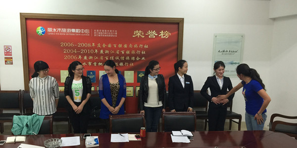 為積極爭創(chuàng)五星品質(zhì)旅行社,5月6日,集散中心散客門市部在分管領(lǐng)導(dǎo)葉學(xué)敏副經(jīng)理的組織下,展開一場理論與實(shí)踐相結(jié)合的集體培訓(xùn)。培訓(xùn)內(nèi)容主要涉及企業(yè)發(fā)展文化、熱門線路介紹、服務(wù)禮儀、服務(wù)規(guī)范等。