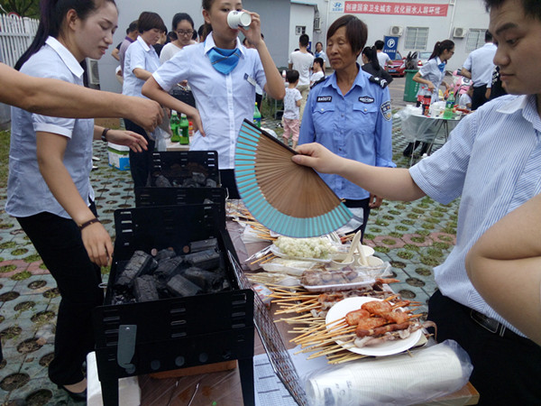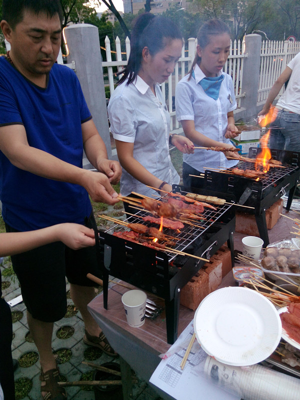在大家的努力下,炭火終于燃燒起來了,燒烤也正式拉開了帷幕,同事們紛紛上場(chǎng)開始大顯身手,刷油、上烤架、刷調(diào)料,一陣陣香味引的路人紛紛駐足。有的同事技術(shù)高超,烤出來的食物色香味俱全,一出爐就被大家一掃而空,有的同事技術(shù)差了一點(diǎn),烤出來的食物外焦里生,大家吃著自己親手烤出的各種食品,體驗(yàn)了一把“自己動(dòng)手豐衣足食”的樂趣。