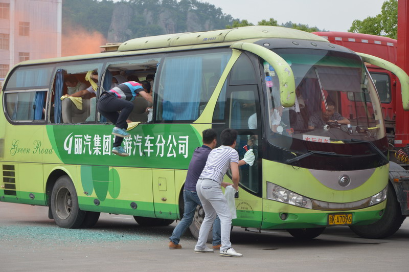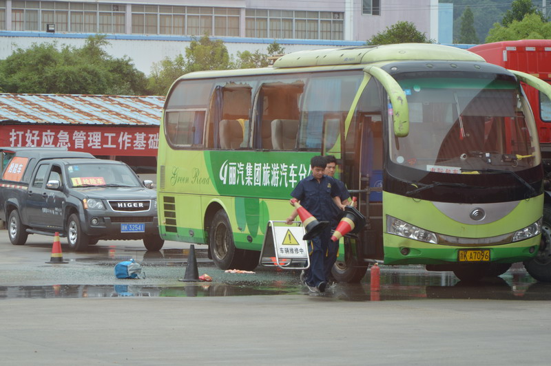 為了全面落實(shí)安全生產(chǎn)責(zé)任,檢驗(yàn)評(píng)估麗水市突發(fā)事件應(yīng)急救援預(yù)案和應(yīng)急救援體系的適應(yīng)性、有效性,最大限度地減少各類突發(fā)事件的損失和負(fù)面影響,6月10日下午,麗水市交通運(yùn)輸局聯(lián)合市道路運(yùn)輸管理局和麗汽集團(tuán)在客運(yùn)西站組織開(kāi)展了突發(fā)事件應(yīng)急救援演練。此次應(yīng)急救援演練共分2個(gè)科目,分別為:科目一交通事故(客車碰撞后起火燃燒)應(yīng)急處置和科目二“三防”應(yīng)急救援車輛調(diào)集演練。文首即為突發(fā)事件應(yīng)急救援演練中交通事故應(yīng)急處置中的一個(gè)場(chǎng)景,此次演練的另一個(gè)科目模擬市交通運(yùn)輸局緊急調(diào)用麗汽集團(tuán)應(yīng)急搶險(xiǎn)運(yùn)力展開(kāi)。演練中,麗汽集團(tuán)在接到市交通運(yùn)輸局應(yīng)急搶險(xiǎn)指令后,迅速啟動(dòng)了應(yīng)急預(yù)案,并立即調(diào)派各單位應(yīng)急搶險(xiǎn)車輛在規(guī)定時(shí)間內(nèi)到達(dá)指定區(qū)域待命。