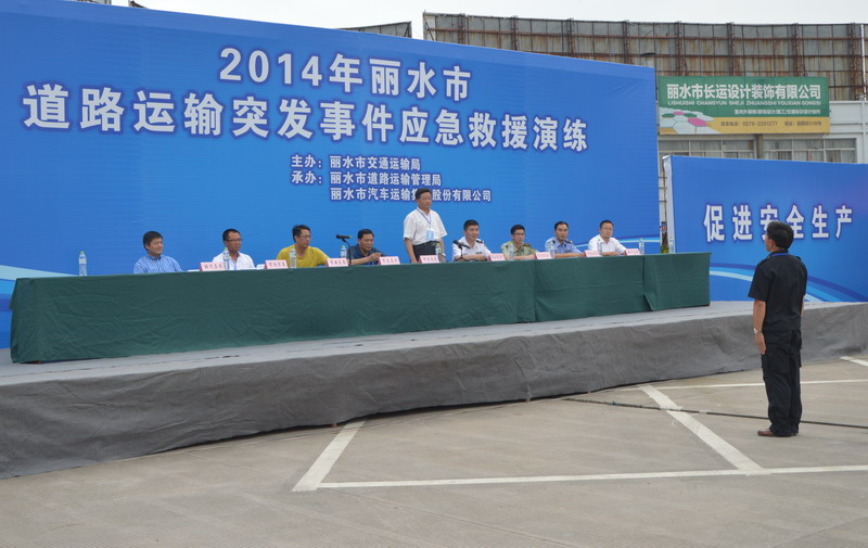 整個(gè)演練由市交通局黨組副書(shū)記、副局長(zhǎng)李根林任總指揮,市交通局副調(diào)研員葉彪、市運(yùn)管局副局長(zhǎng)金昌平任副總指揮,麗汽集團(tuán)常務(wù)副總經(jīng)理何赤詮任現(xiàn)場(chǎng)總指揮。演練共調(diào)集各類車輛近20臺(tái),80余人參與了演練。麗水市公安局副局長(zhǎng)、麗水市交警支隊(duì)支隊(duì)長(zhǎng)陳志斌,麗水市政府應(yīng)急辦主任尹耀新,麗水市消防支隊(duì)副支隊(duì)長(zhǎng)鄭志堅(jiān),麗水市安全生產(chǎn)監(jiān)督管理局應(yīng)急處處長(zhǎng)王琦,麗水高速交警支隊(duì)副支隊(duì)長(zhǎng)朱宏煒,麗汽集團(tuán)黨委書(shū)記、董事長(zhǎng)葉茂,麗汽集團(tuán)總經(jīng)理薛和有等領(lǐng)導(dǎo)和麗汽集團(tuán)相關(guān)管理人員共200余人觀摩了整個(gè)演練過(guò)程。