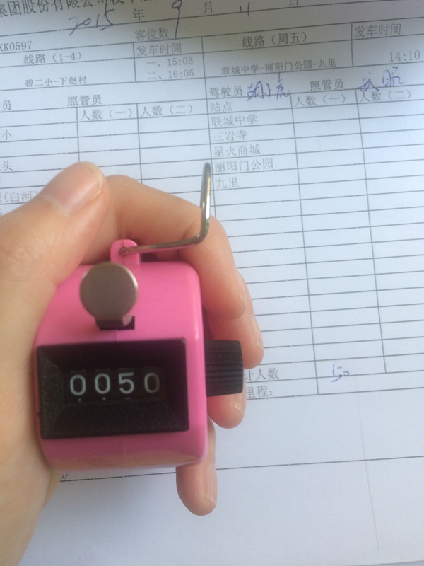 9月7日,新學期第一天,教育局會同安監(jiān)局、交通局、交警隊等主管單位在碧湖小學組織召開了校車安全管理現(xiàn)場會,校車分公司照管員武昭的一個小計數(shù)器讓現(xiàn)場各主管單位的領(lǐng)導和碧湖小學的老師們都露出了滿意的笑容。