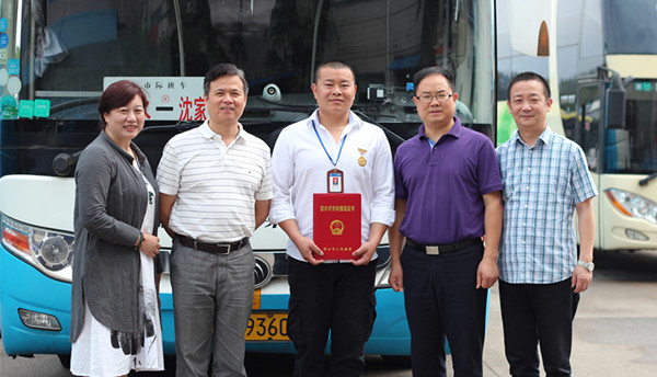 6月5日上午,麗水市總工會領(lǐng)導專程到麗汽集團客長運分公司,給“最美司機”章雙林送來麗水市勞動模范獎章和證書。