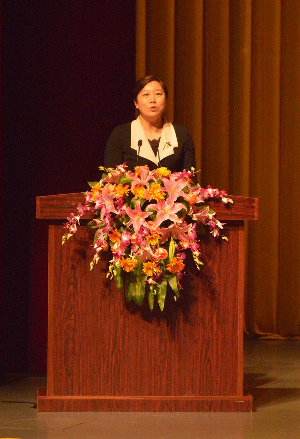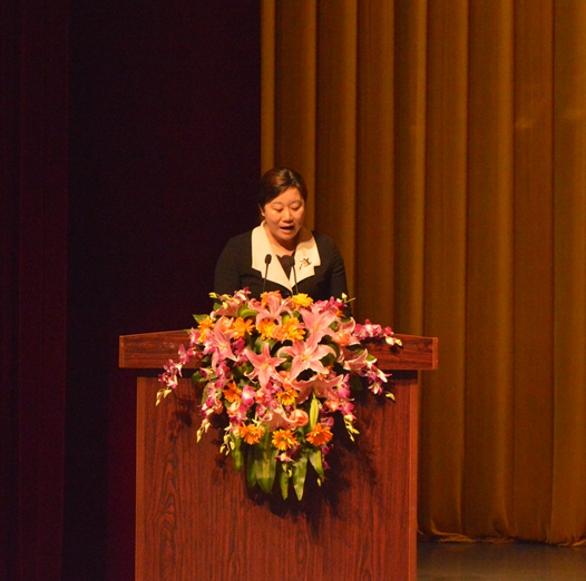 工會主席呂麗君作模范司機吳斌先進事跡報告