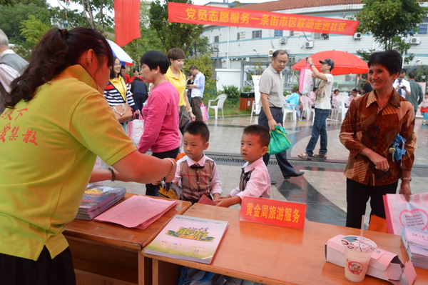 為踐行黨的群眾路線,進(jìn)一步推進(jìn)服務(wù)型黨組織建設(shè),解決服務(wù)群眾“最后一公里”問題,9月20日上午,麗汽集團(tuán)積極組織黨員志愿服務(wù)者參加了由市直機(jī)關(guān)黨工委在市區(qū)燈塔公園舉行的黨員志愿者服務(wù)一條街“市區(qū)聯(lián)動走進(jìn)社區(qū)”活動。來自麗汽集團(tuán)本部、客運(yùn)西站、旅游集散中心、伊翔和甌龍(甌翔)等單位的12名黨員志愿服務(wù)者為社區(qū)居民提供了國慶黃金周汽車票預(yù)定、黃金周旅游、汽車銷售維修等服務(wù),同時還開展了微心愿征集活動。