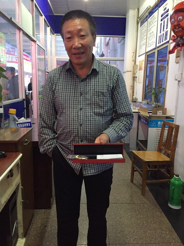 10月24日8點左右,在客運東站總臺,一位名叫柯玉榮的旅客捧著價值一萬多元、重達50克的金燦燦的金項鏈激動萬分地說:“真是太感謝你們了,你們追回的不僅僅是一條金項鏈,更是我兒子的一份孝心,沒想到因為我的粗心把它落在了售票窗口處?!?br/> 面對失而復得的禮物,柯玉榮旅客激動不已。