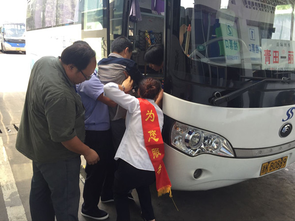 坐“輪椅”的旅客是青田人,因患嚴(yán)重中風(fēng)妻子陪同到麗水就醫(yī),看完病后乘三輪車到汽車東站準(zhǔn)備回青田。因無法獨(dú)自行走正和手提大包、小包行李的妻子在汽車東站門口發(fā)愁。恰好被巡查場地的副經(jīng)理戴宏星和保衛(wèi)科的熊宣標(biāo)看見了,他們趕緊上前,一左一右攙扶起旅客,可是旅客根本不能行走,他倆使勁全力幾乎是半抬的把旅客扶到服務(wù)臺(tái)。從售票廳到檢票口短短的五十米路,足足用了十來分鐘。