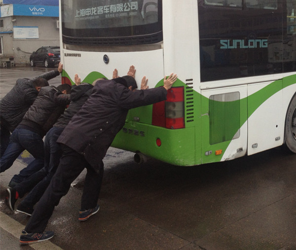 早上6時(shí)40分,開207線路的公交司機(jī)高師傅來到客運(yùn)東站站前廣場(chǎng),和往常一樣,準(zhǔn)備出車。插入鑰匙,轉(zhuǎn)動(dòng)啟動(dòng)按鈕,之前的發(fā)動(dòng)機(jī)轟鳴聲卻沒聽到,連續(xù)轉(zhuǎn)了幾次,車子還是沒反應(yīng),高師傅心里隱隱覺得肯定是出問題了。經(jīng)過檢查,發(fā)現(xiàn)是由于天氣太冷,電瓶電力不足無法啟動(dòng)。他馬上打電話找來了車隊(duì)的兩名同事,一人把方向盤,兩人推車,可車子移動(dòng)過于緩慢,根本不可能通過人工打火啟動(dòng)。就這樣,207路的公交車停在了東站站前廣場(chǎng)的中央占著通道,影響了出站的交通。